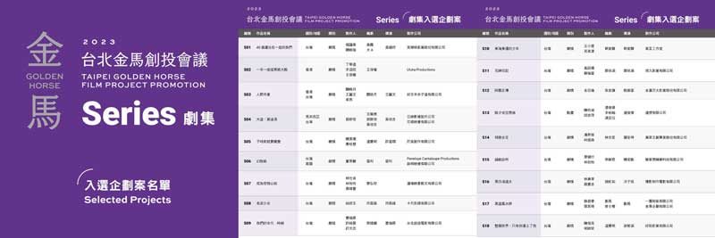 歷年入選的劇集企劃案,也陸續製作上映,已於串流平台播映的包含《我願意》、《不良執念清除師》,其餘拍攝或後製中則有《何百芮的地獄毒白》、《非殺人小說》、《塑膠花》、《聽海湧》、《影后》、《人生清理員》、《你好,我是接體員》、《喝酒吧!笨蛋》等,類型豐富,精采可期!