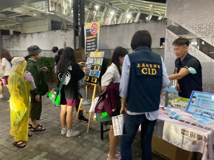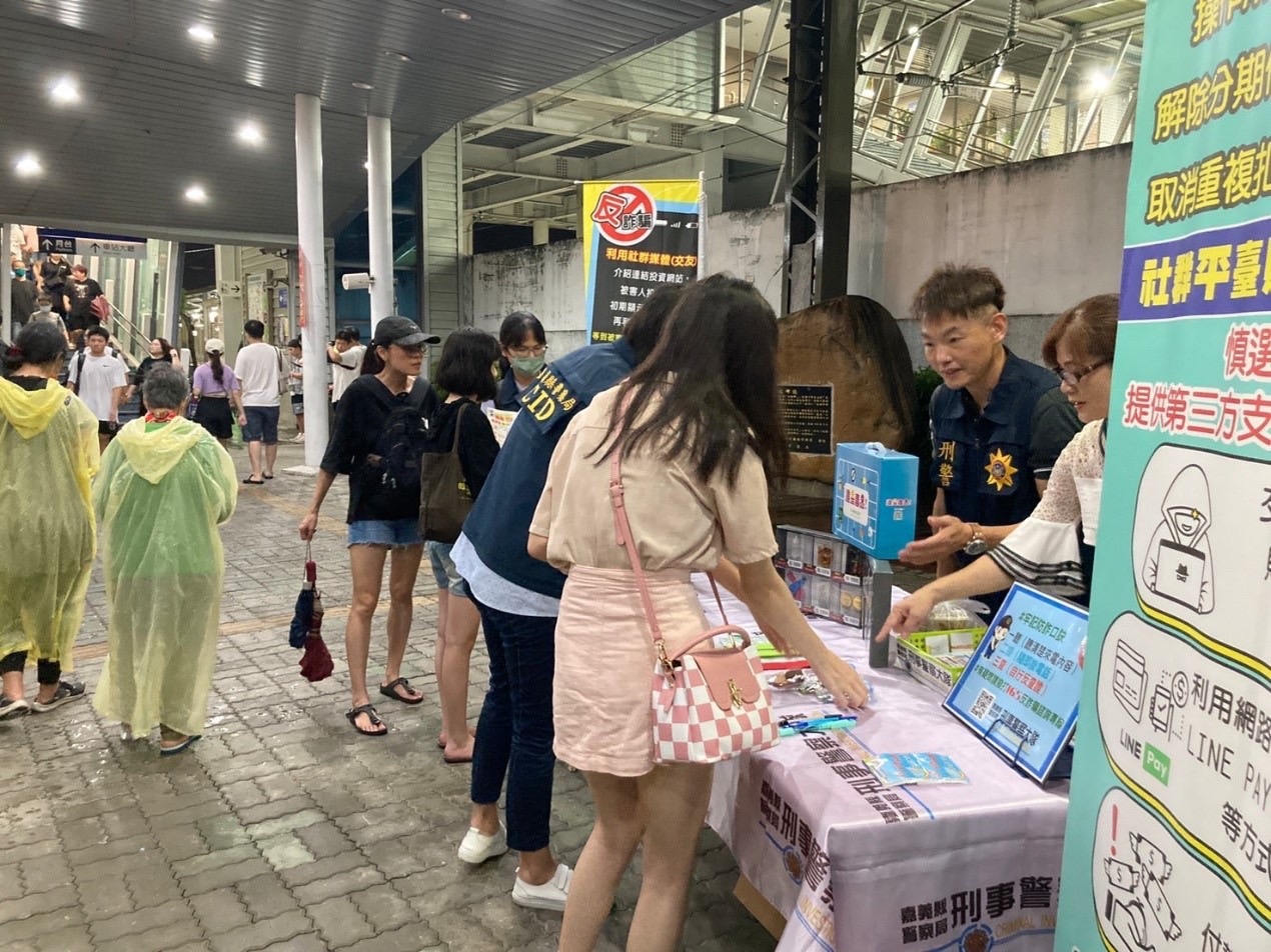 一年一度的嘉義民雄鄉大士爺文化祭於112年9月5至7日舉行,嘉義縣警察局特結合交通部臺灣鐵路管理局,利用交通局民雄火車站為交通樞紐,紓解大量的人流,於祭典期間在民雄車站設立防詐宣導攤位,運用公私協力向民眾宣導各項防詐作為,以達「減少接觸、減少誤信、減少損害」三減目標!