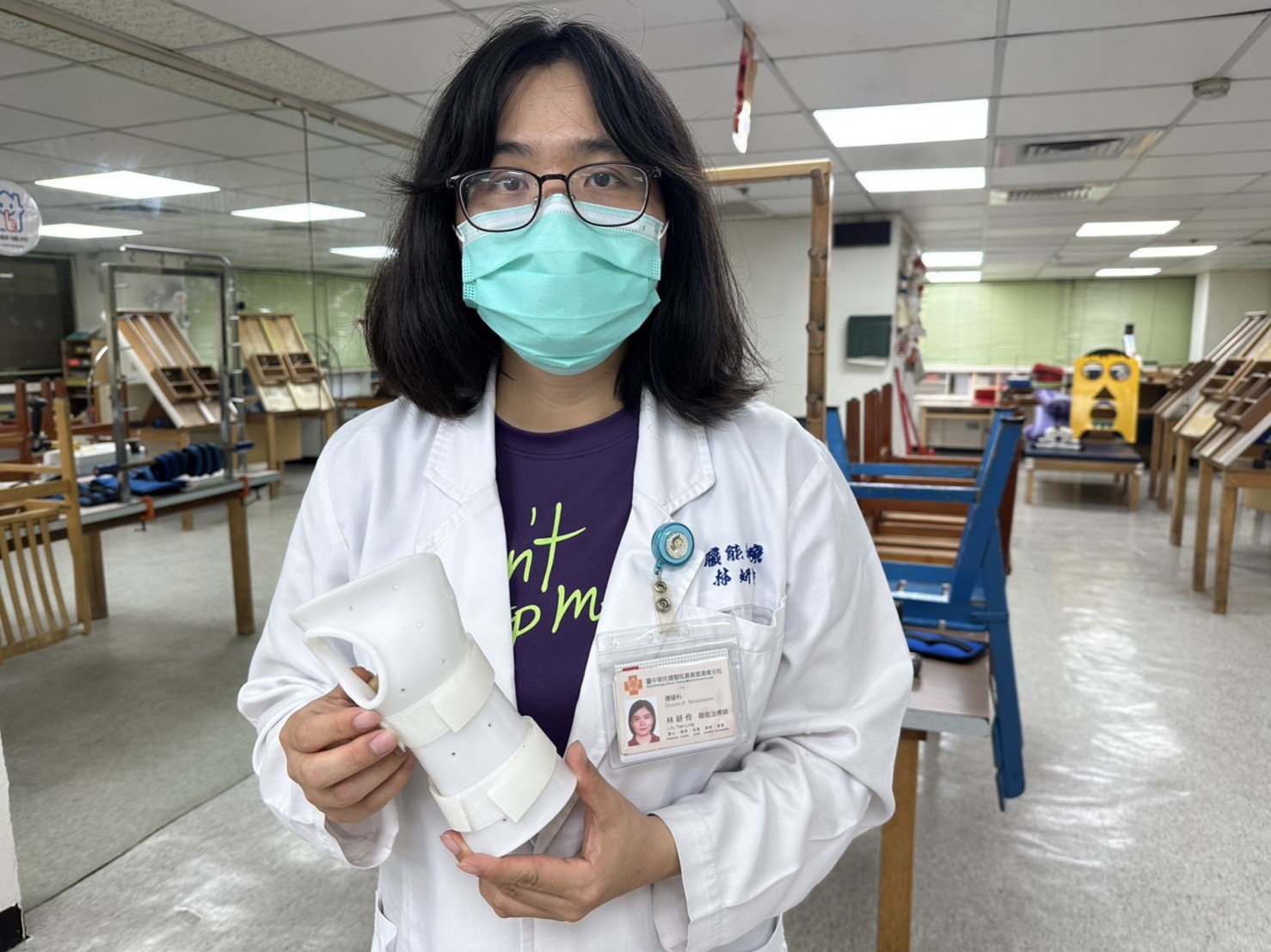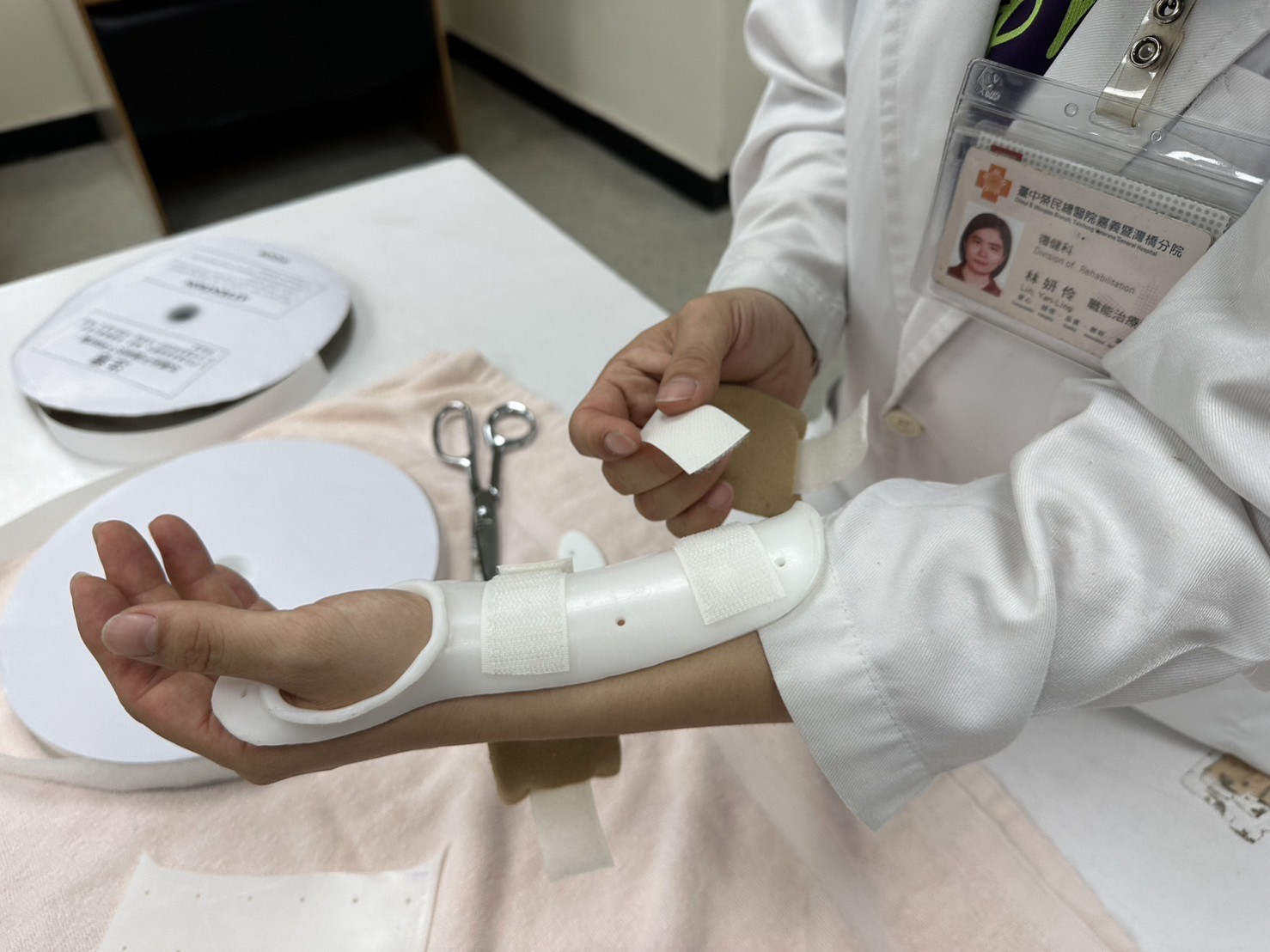 嘉榮復健科職能治療師林姸伶表示,讓手臂骨折女子嘖嘖稱奇的輔具,就是復健臨床經常使用的「副木」,是一種低溫熱塑的塑膠醫材,能在60~70℃的熱水中軟化,職能治療師會依據患者需求,在患部加工成型,是一種量身施作的治療性輔具,主要有保護受傷組織避免二度傷害、固定關節或傷處幫助癒合、預防因疤痕或張力造成攣縮的擺位、取代無力的肌肉維持活動,以及避免關節變形加劇等功用,因此副木經常運用在骨折固定、腦中風造成手部攣縮的固定、預防手部二度燒傷造成疤痕攣縮的擺位,或用以維持橈神經受傷後的腕部伸展。