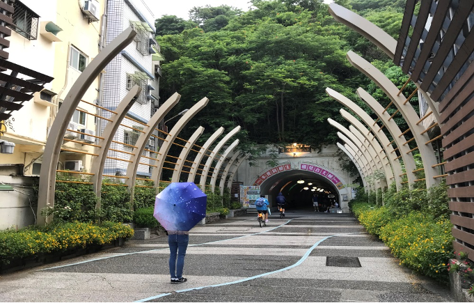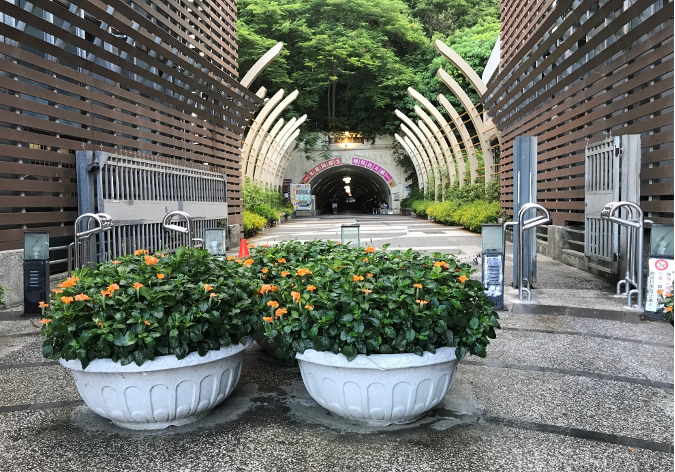 從上一站的武德殿步行到西子灣隧道約需4分鐘,西子灣隧道又稱壽山洞,是一座位於鼓山區的防空洞遺跡和人行隧道,連結著哈瑪星與西子灣國立中山大學,全長260公尺,屬於壽山公園的相關建設。興建於1927年,於1933年開始啟用,2004年登錄為高雄市歷史建築,吸引很多遊客到此一遊。到訪當日,恰遇午后陣雨,頗有詩意;若在鳳凰花開時節,花開滿山坡,更是美!