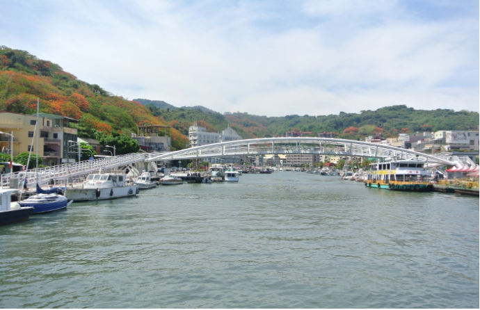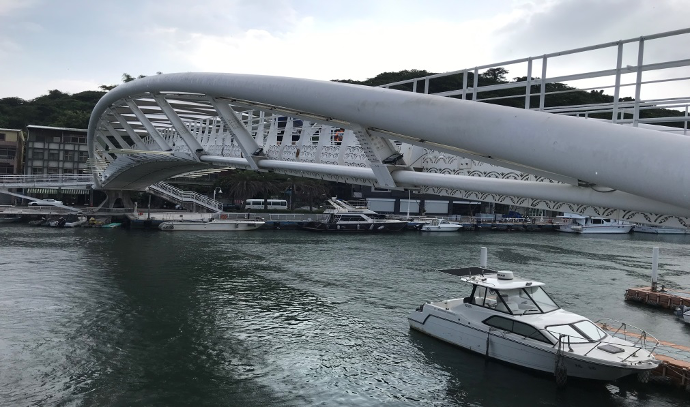 ▲《一號船渠景觀橋樑》,位於鼓山輪渡站旁,供人與單車通行的景觀橋,是哈瑪星的新地標,白天在橋上可觀賞海港與壽山風情。五月鳳凰花開時節拍攝。(圖/記者張筱攝)
