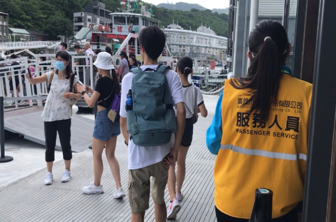 ▲遊客依序登船旗鼓航線~旗鼓一號,準備往旗津出發。暑假期間旅遊人潮明顯增多。(圖/記者張筱攝)