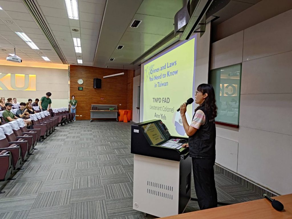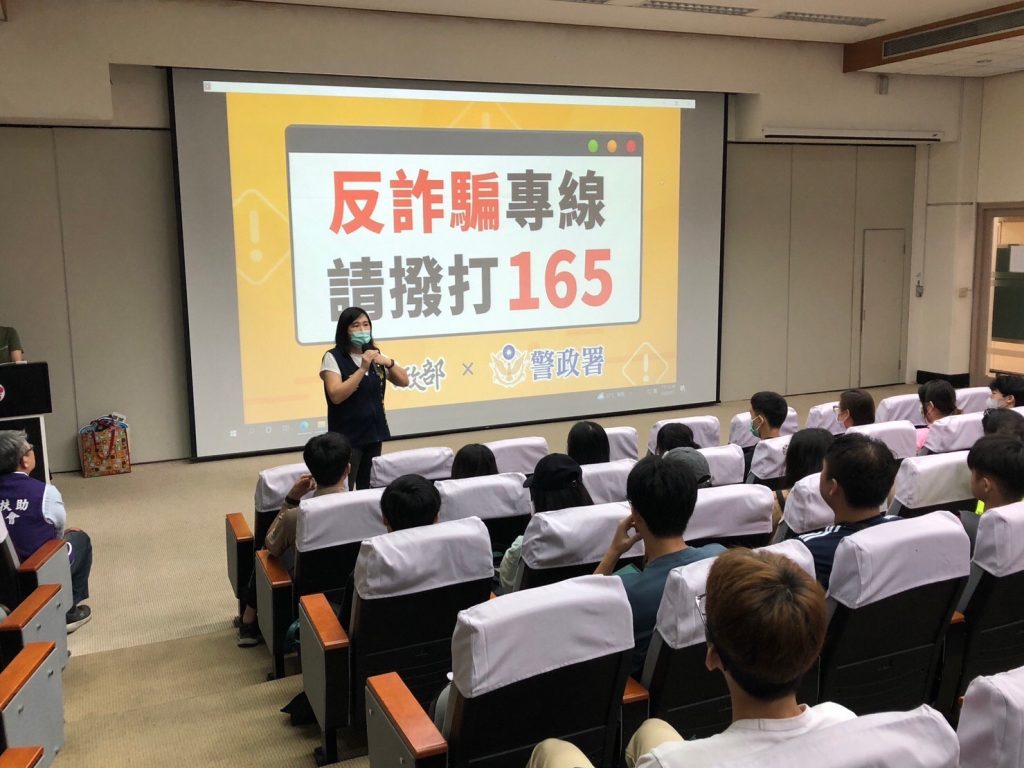 擔任英文宣導講師的市警局外事科警務正葉秝誼表示: 警察局於每學期開始時都會利用機會宣導及關懷境外學生,提醒其在臺犯罪的嚴重性及人身安全保護建議,以加強法治觀念並適時給予協助;學生在臺如遭遇交通或是治安問題時,除可撥打110詢問外,遇到疑似詐騙狀況,特別是在社群軟體或網路上購買低價商品、帥哥美女等不明人士要求投資等情況下,應特別小心留意,亦可撥打165反詐騙諮詢專線查證,另外也宣導如何防制人口販運,叮嚀學生應留意並妥善保管護照與居留證,不隨意交由他人,讓境外生在臺安心生活,順利求學不卡關。