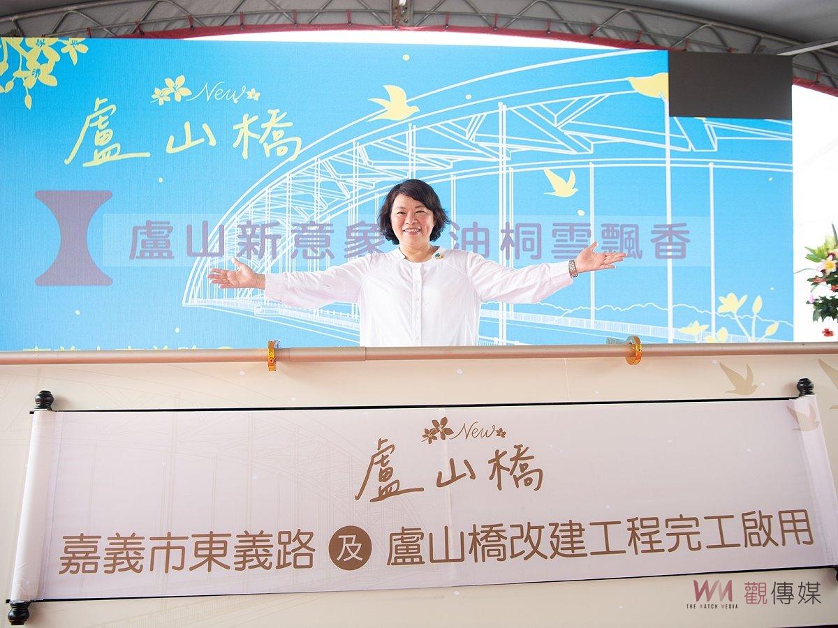 市府工務處說明表示,在將近3年的過程中,施工團隊克服了種種挑戰,新盧山橋已於111年11月3日先行通車,接續趕辦道路拓寬工程也於112年8月29日整體完工,全長約1,715公尺的東義路經改建後,拓寬為20公尺道路並規劃排水系統,低窪地區道路提高,改善區域的積淹水問題,過彎的線型截彎取直,提升道路安全,道路兩側設置人行空間,友善人本環境,設施帶並種植洋紅風鈴木和茄苳樹,施工期間工地致力提升施工安全,為嘉義市獲得首座公共工程金安獎之肯定;盧山橋及東義路的完工,建構嘉義市成為橋安,路安,人平安的優質生活城市,並融合在地人文地景及結合桐花季、走走春等活動,期待盧山橋在肩負守護往來人車安全通行重責的同時,也能成為嘉義市具有橋美、水美、風景美之嶄新地景區。