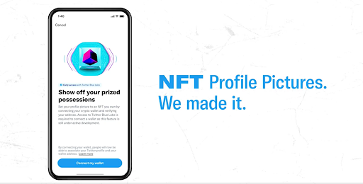 Twitter 為其 Twitter Blue 訂閱用戶於 iOS 上推出 NFT 頭像認證功能,透過連結錢包與驗證,減少同一個 NFT 被濫用的情況。