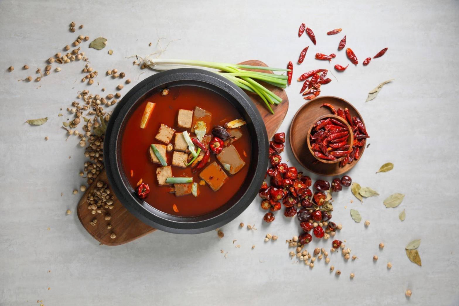 除了備受好評的好肉,當然少不了相得益彰的好湯,隨著近日來氣溫直線下滑,林口昕境店特別推薦「爆炒專門科湯底 (爆炒川府麻辣/爆炒蒜頭蛤蜊雞湯/爆炒海味石頭湯)」,香氣的渲染力同樣來勢洶洶。其中最令鍋物饕客擋不住誘惑的,是業界少見的「爆炒川府麻辣湯」,燈籠椒、子彈椒、茴香、甘草等辛香料食材,經由熱的鍋氣爆香,更能突顯麻香與辣度。基底湯從原先的昆布湯,進化成由豬雞骨熬製的白湯,更提升湯底的厚度與香醇。