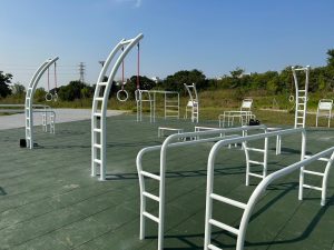 陳局長進一步表示,嶺東公園特色健身場面積約200平方公尺,規劃有5種類型的健身器材,包含有多功能接力桿、單槓、雙槓、高低吊環、平衡板等,可變化出20多種運動方式,提供核心肌群鍛鍊場域,設施皆採不鏽鋼構建,並以簡約造型組合,非高難度器材,可供拉筋、伸肩、伸臂等,已於2023年10月底完工啟用,目前民眾使用後反映良好,歡迎台中市民朋友們踴躍前往運動。