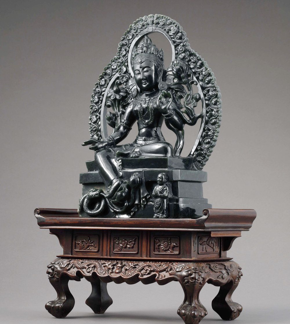▲李森林作品〈普賢菩薩/和田墨玉〉。(圖╱瓔堡玉苑提供)