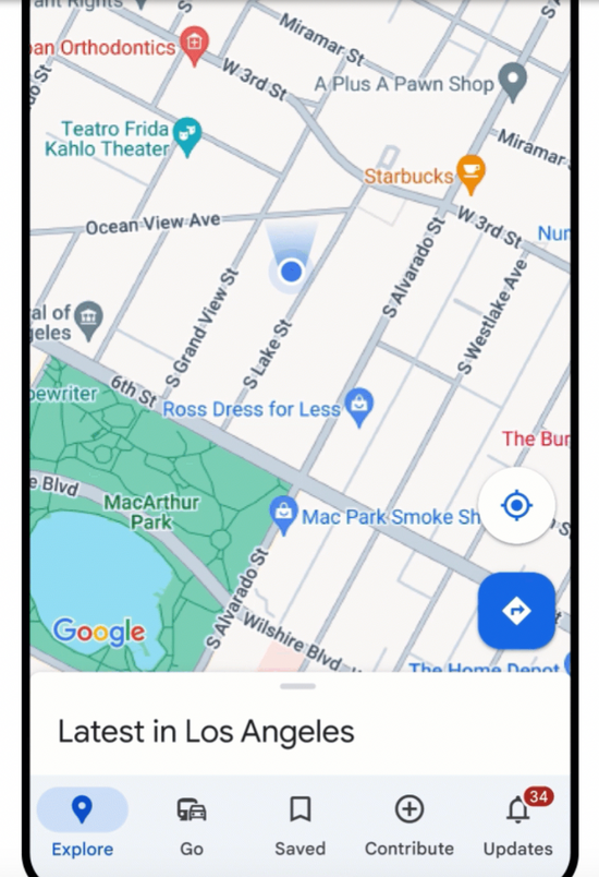 Google 地圖在搜尋列加入Lens相機圖示,當使用者到達某個地方並需要快速了解周圍環境或確定方向,就可以點選Lens,並用手機掃描實景街道,就可以找到附近的ATM、公車站、餐廳、咖啡店和商店等資訊。
