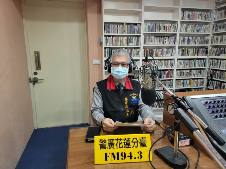 花蓮縣警察局長戴崇贒今日上午11時,親自前往警察廣播電臺花蓮分臺,宣導「111年加強重要節日安全維護工作」及「治安平穩、交通順暢、民眾安心」工作主軸,並提醒聽眾持續加強防疫自我保護,如進入警察單位洽公,務必配合戴上口罩、量體溫、酒精乾洗手等措施。