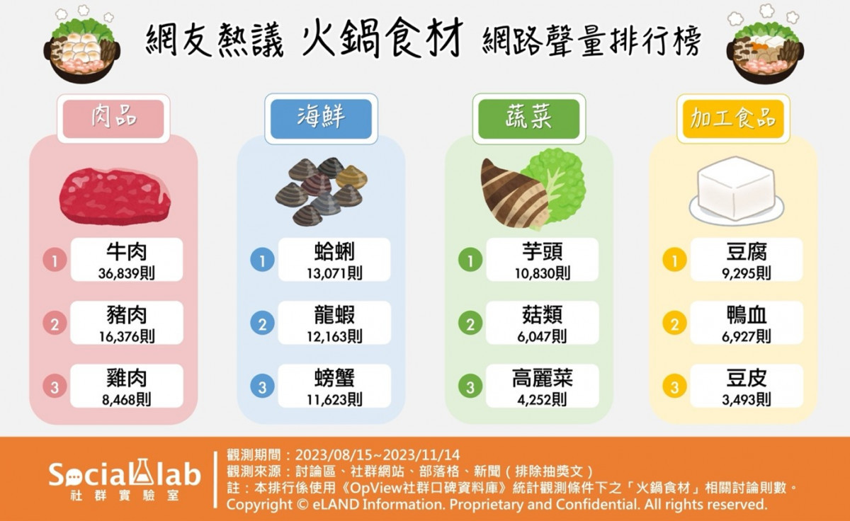 《Social Lab社群實驗室》本次透過《OpView社群口碑資料庫》追蹤近三個月內「火鍋食材」相關話題的網路聲量,帶您了解網友熱議的火鍋食材排行。