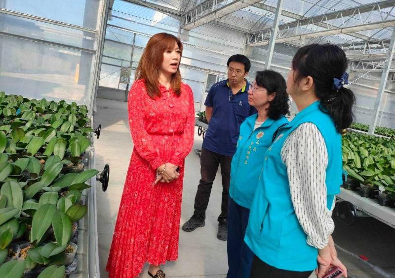 隨後,由黃員引導許處長一行人參觀蘭花園區,佔地2000坪,頗具規模。黃執行長指出,雅盛蘭花生技公司結合產地,溫室內約有16000坪蝴蝶蘭栽培生產面積,採用國際標準自動化先進生產設備及專業切花染色技術處理,提供創新科技更多元蝴蝶蘭商品,且使用淹灌科技技術,節省許多人力。