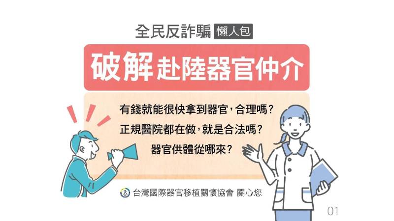 【健康醫療網/記者張慈恩報導】台灣末期腎病的發生率和盛行率高居世界第一,器官移植需求壓力不小!台灣國際器官移植關懷協會表示,根據健保資料庫的分析,從1998年到2007年期間,共有1,919位境內腎移植病患,卻有高達2,284位腎移植病患前往境外手術,其中9成前往中國大陸。然而,器官仲介說詞是否可信?協會破解三大常見詐騙說詞,提醒民眾赴大陸器官移植,恐涉及犯罪,全民自保才能反詐騙。
