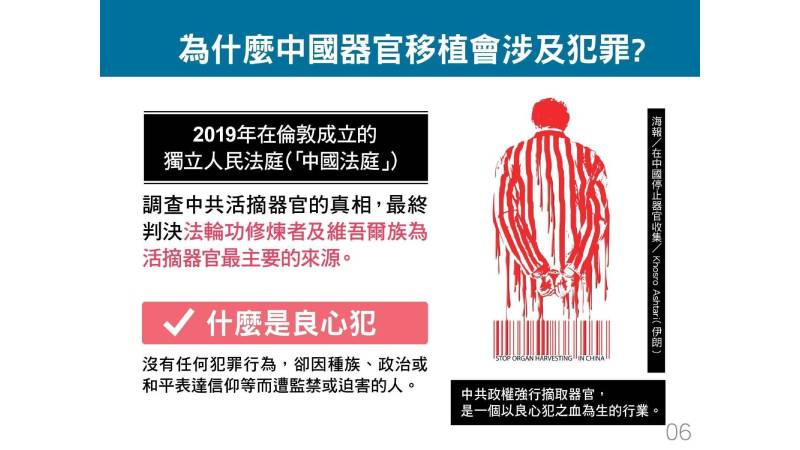 ▲位於倫敦的中國法庭判決,遭活摘器官的主要來源為法輪功修練者及維吾爾族人。(台灣國際器官移植協會提供)