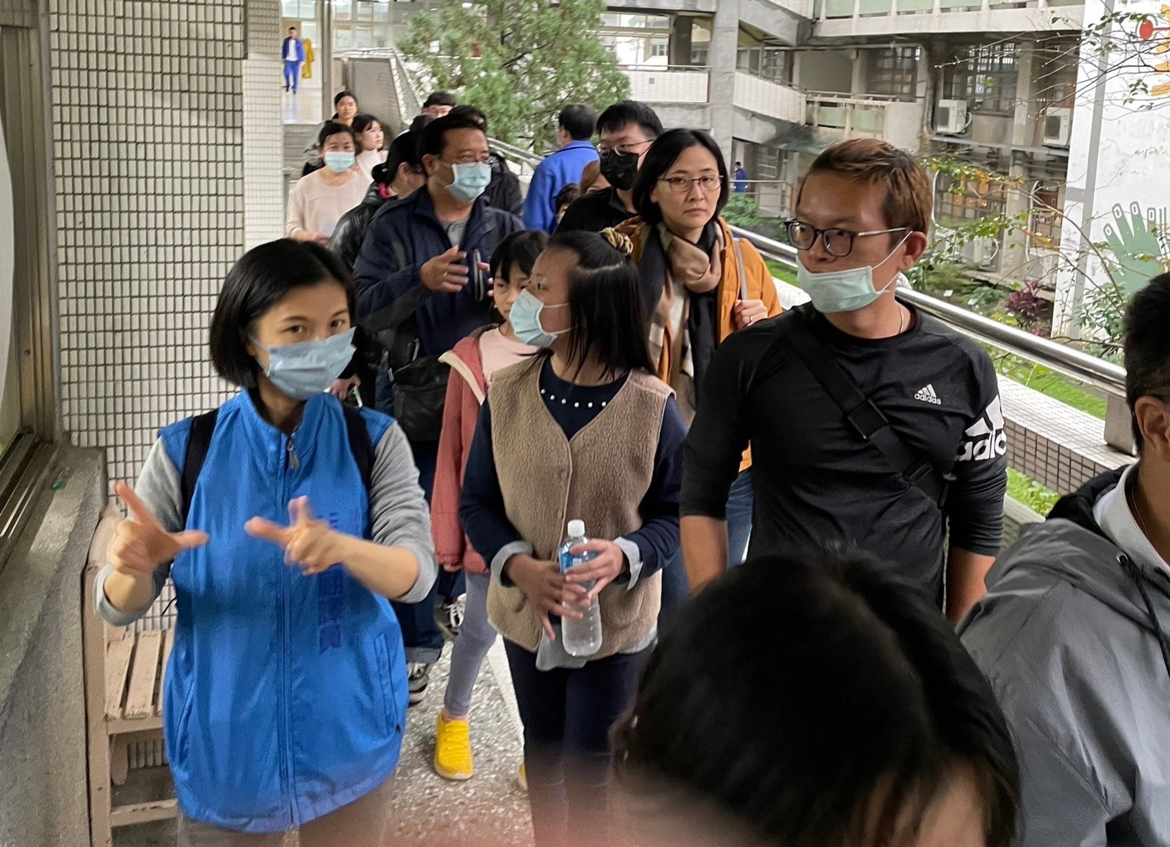 圖說:手語翻譯員協助聽障家長共同參與校園參訪活動。