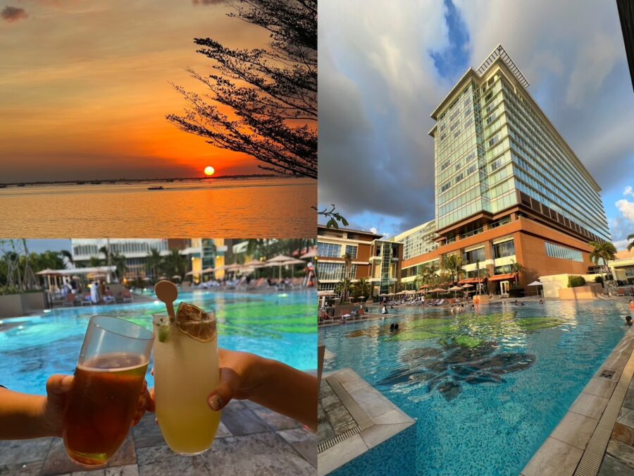 早晨吃好吃飽,自助餐琳瑯滿目的蔬果汁和地方美食,提供旅者一日美好開始的能量,最是推薦的莫過於在客房內享用早餐,前一晚先行確認想要選擇的類別、訂好送餐時間,就可以好好放鬆睡好眠,在送餐預約時間前起床,用最舒服的態度等待早餐的到來,不疾不徐的享受晨光序曲。當然,大約在午後時間可以到游泳池運動、玩水,點一杯清涼飲品,慢慢看著夕陽西下,在沒入馬尼拉灣時所投射出來的霞光,映照於海面上的波光粼粼,這美景會讓人流連忘返,所謂世界八景之一的「馬尼拉灣落日」,就在你的眼前如實的呈現。