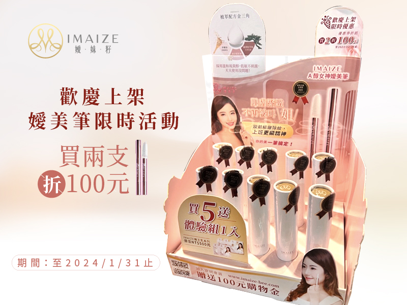 「A醇女神嬡美筆」是IMAIZE嬡妹籽與藥局合作的明星產品首選,將美妝保養與生活藥局相結合。嬡美筆結合今年最流行的保養品成分「A醇」和台東30號米萃取的米糠油。不僅如此,其特有的筆狀設計可以更精確地應用於需要加強的特定區域,從而減少浪費,此產品更榮獲國家品質金牌獎,備受肯定。