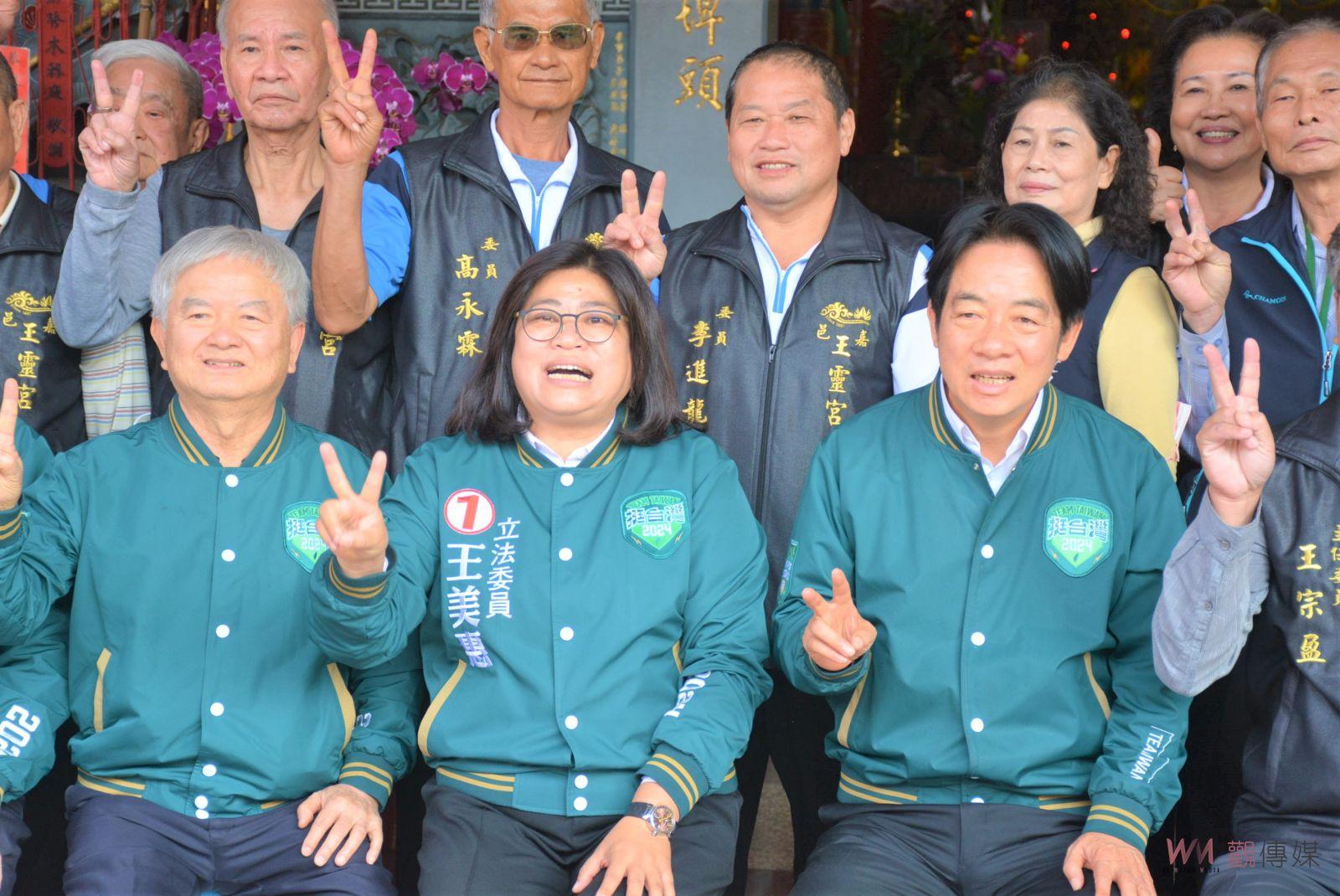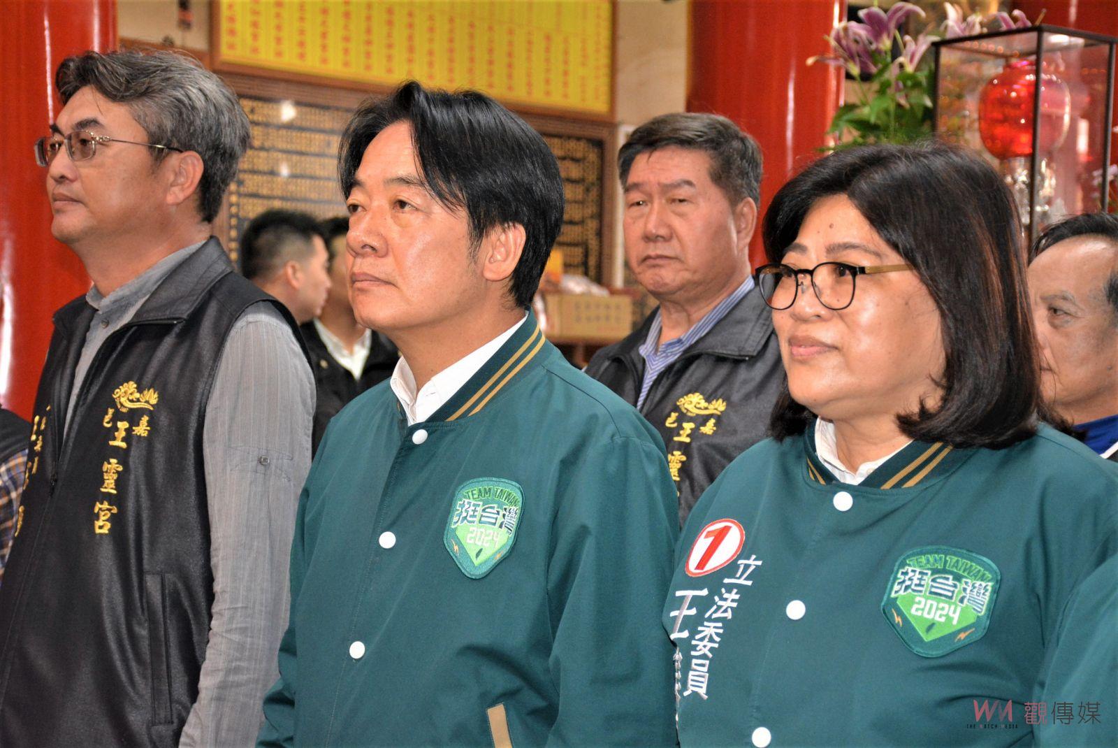 (觀傳媒嘉義新聞)【記者陳惲朋、郭政隆/嘉義市報導】民進黨總統參選人賴清德於2024年上班首日來到嘉義市,並在嘉義市立委王美惠陪同下,前往嘉邑玉皇宮、王靈宮五顯帝廟參香祈福,祈求新的一年平安順利;總統、立委選戰進入白熱化階段,賴清德的到來,吸引不少支持者前往替兩人加油打氣,賴清德也強力替王美惠拉票,大讚其一路走來為台灣、為嘉義奉獻,服務鄉親的精神從未改變,但此次卻屢屢被不實的謠言抹黑,拜託請鄉親們一定要繼續給予王美惠支持,一起守護台灣。