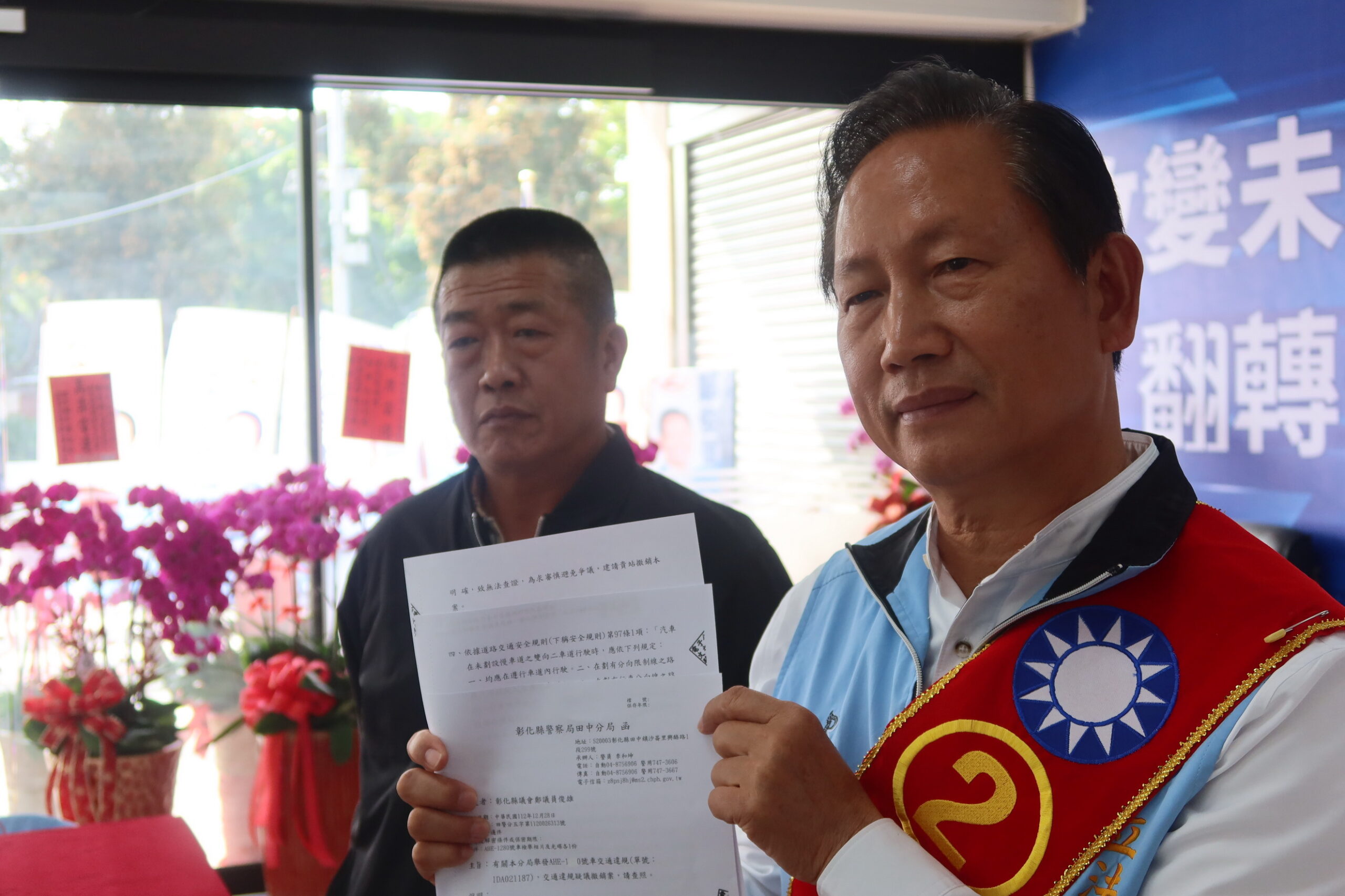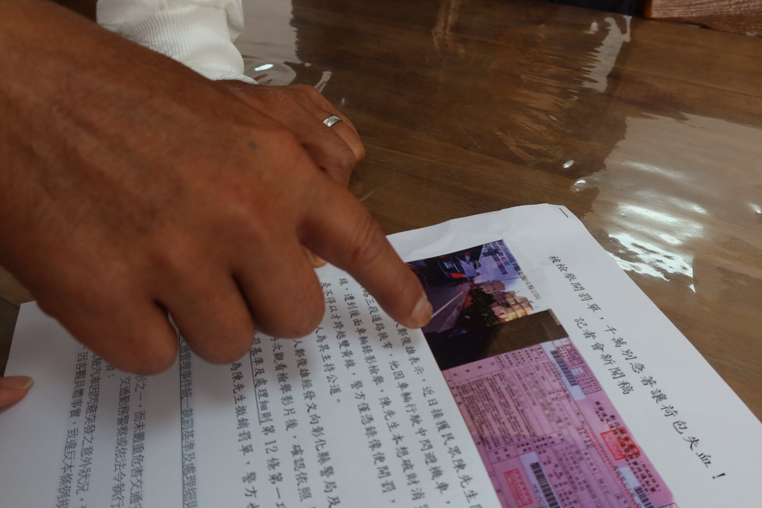 陳先生表示,當天他駕駛自小客車行經山腳路從社頭往員林方向,不料遇到逆向行駛而來的機車,當時他為了閃避逆向的機車,不慎跨越雙黃線,慘遭後方車輛錄影檢舉,本來是想破財消災,但越想越不對,找立委候選人鄭俊雄陳情。
