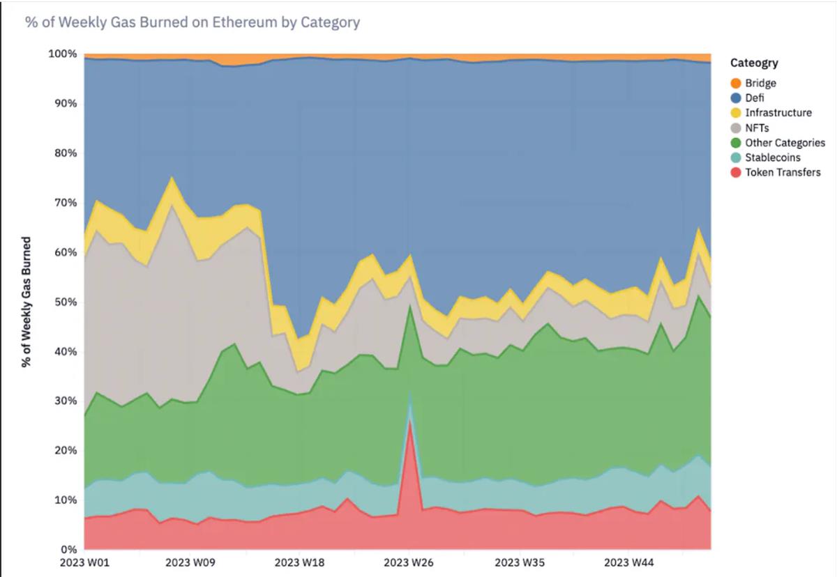 - 由 Uniswap 領銜的 DeFi 佔以太坊 Gas 使用量的 41%,強調了 DeFi 和 DEX 在以太坊用例中的重要角色