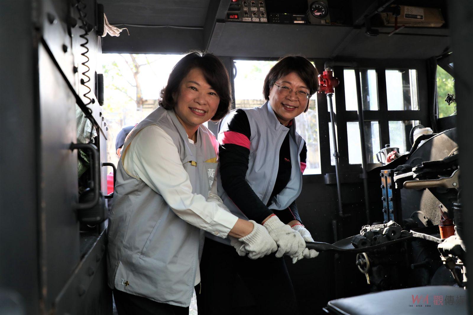 (觀傳媒嘉義新聞)【記者郭政隆/嘉義市報導】嘉義市政府與阿里山林業鐵路及文化資產管理處,1/6日於北門車站共同舉行Shay-21號蒸汽火車復駛啟航活動,復駛首航典禮在嘉北國小管樂班學童悠揚樂音中展開;現場並播放修復記錄影片,揭示修復過程的艱辛與不易,而讓蒸汽火車華麗轉身,再次風光上路,成功推動此事,展現無比能力和魄力的嘉義市長黃敏惠、林鐵及文資處長黃妙修2人,也在啟航典禮上熱情擁抱、相互感謝彼此團隊的緊密配合。