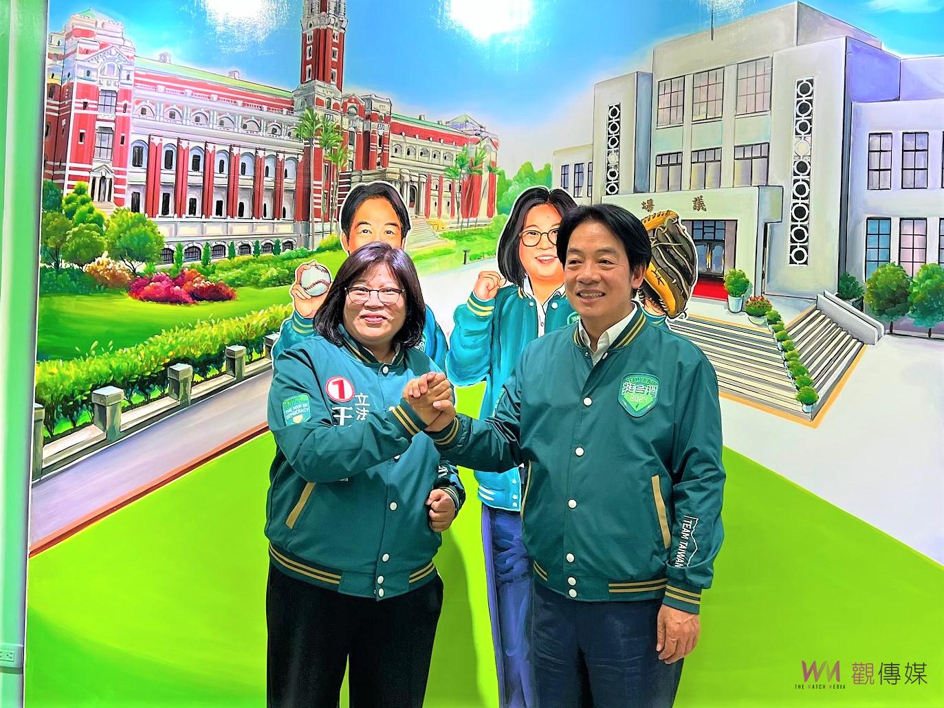 賴清德在親切向支持民眾致意後進入王美惠競選總部服務處,並看見設在牆面的手工繪製圖,上頭有「賴桑分身」,賴清德也驚呼「實在太像了」,同時特別停留合影,更是在旁簽名以作留念;賴清德在致詞時,也不忘向支持者喊話,希望台灣人通通站出來,與他共同完成選戰的最後一哩路;王美惠也更是強調要「選對的人,民主路一直走」。