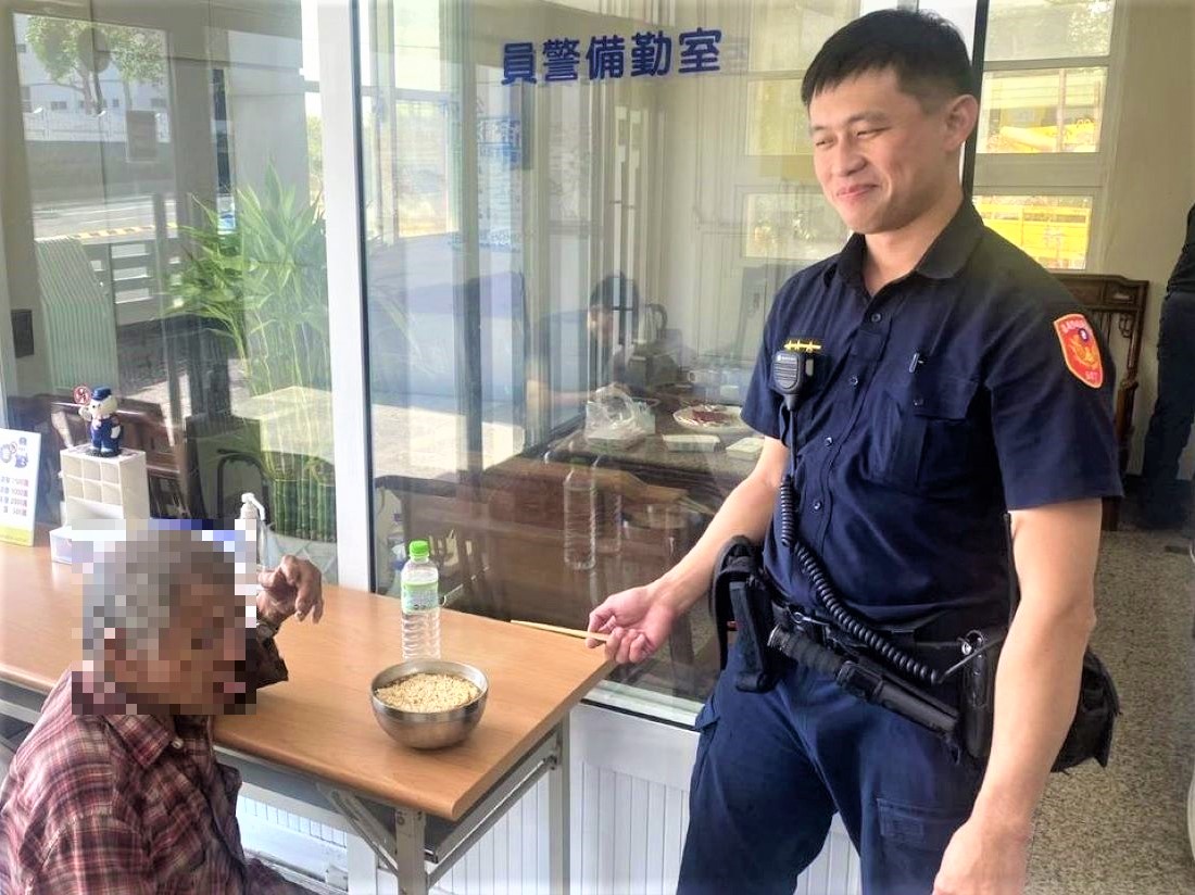 警方見老翁面露疲態,立即盛了飲用水給老翁,並煮1碗熱騰騰的泡麵給老翁果腹,待老翁吃飽喝足,補充好體力之後,警方得知老翁要前往嘉義火車站搭車返家,警方便駕駛巡邏車載老翁到嘉義火車站,讓老翁可以順利搭車返家,事後老翁對於警方的協助深表感謝,表示幸好路過派出所並得到警方的協助,讓其能順利搭火車返家;警方也提醒老翁,如有遇到類似情形發生,可以撥打110報案或請求當地派出所協助,警方會立即派人到場關心協助。
