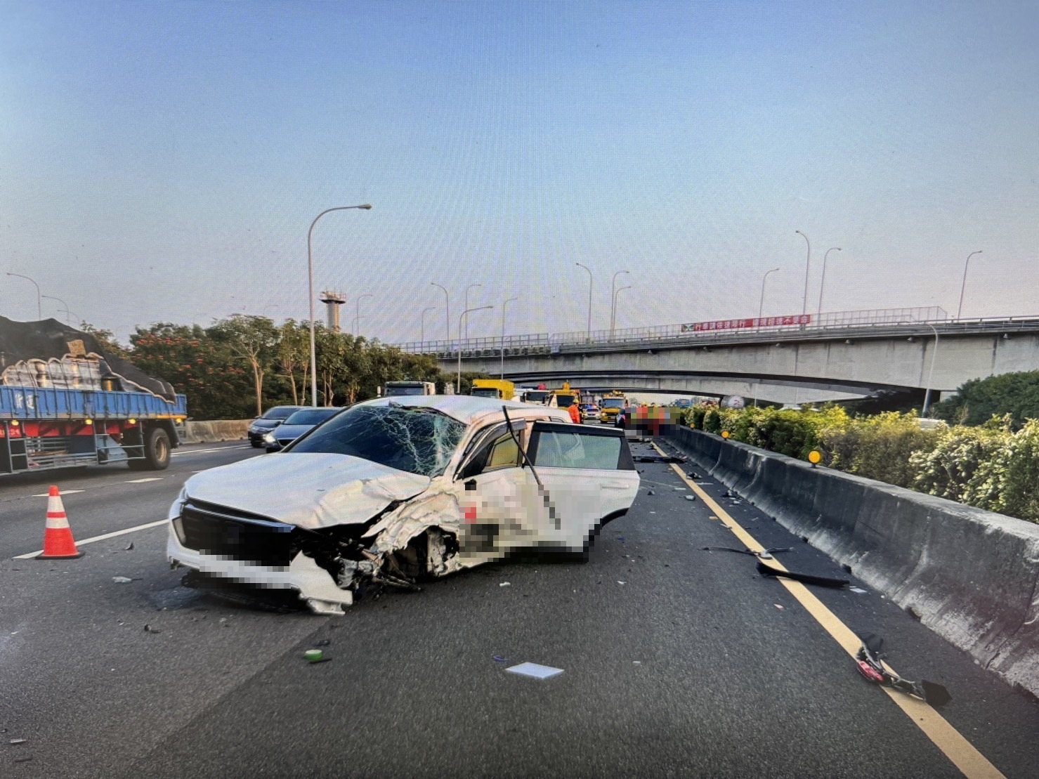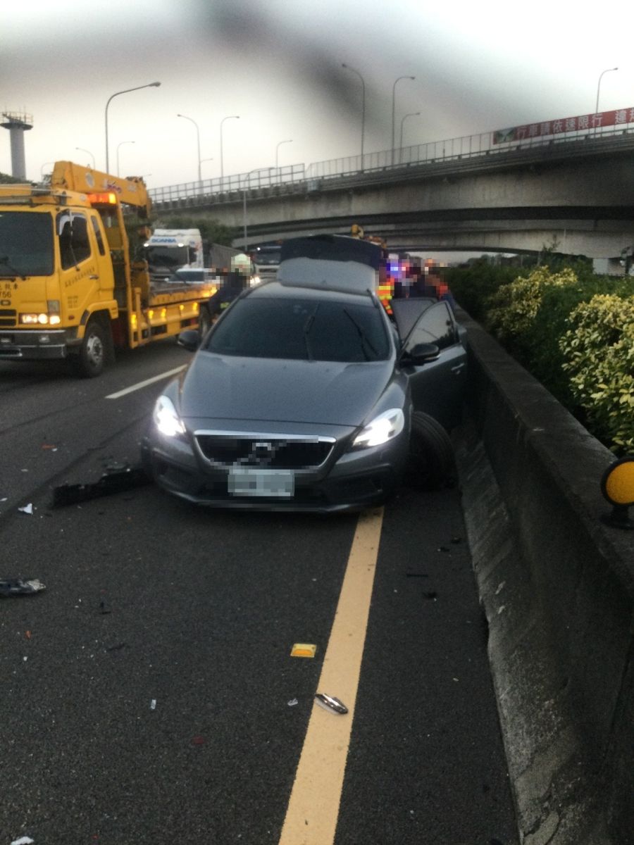 ▲國道1號中山高速公路驚傳死亡車禍,「瑞典坦克」駕駛自撞國道分隔島下車查看,遭後方租賃小客車追撞小客車,楊姓駕駛被撞飛傷重死亡。