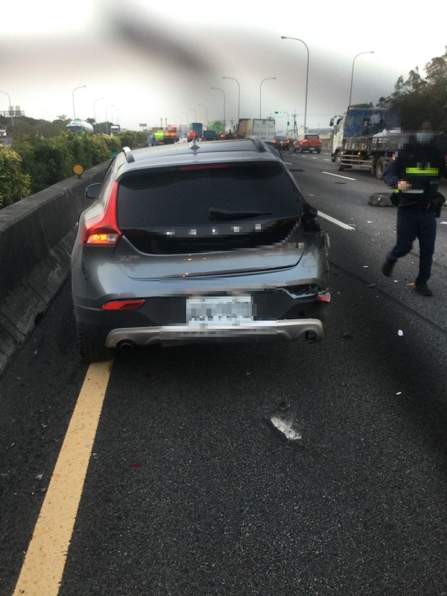 事故發生後數分鐘,楊男離開車上,行走在其車輛右前側時,後方1輛由37歲莊姓男子駕駛的租賃小客車追撞楊男的車輛,造成楊男被撞飛,事故發生後,因兩事故車輛占據車道,造成後方車流回堵,事故於上午近8點排除。