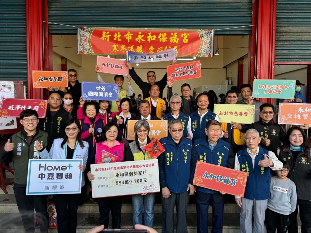 19日上午永和保福宮與中嘉寬頻|新視波及永和區公所辦理寒冬送暖公益活動,現場除了發放白米、麵線與回饋金以外,還提供相關的健康檢查。永和保福宮主委陳水生表示,保福宮每年都會辦理歲末寒冬送暖活動,長期熱心公益回饋地方民眾,今年的公益物資超過884萬元,能夠幫助永和區超過2000個弱勢家庭。新北市議員連斐璠說,透過這樣的活動幫助更多的民眾,讓社會能夠更祥和。