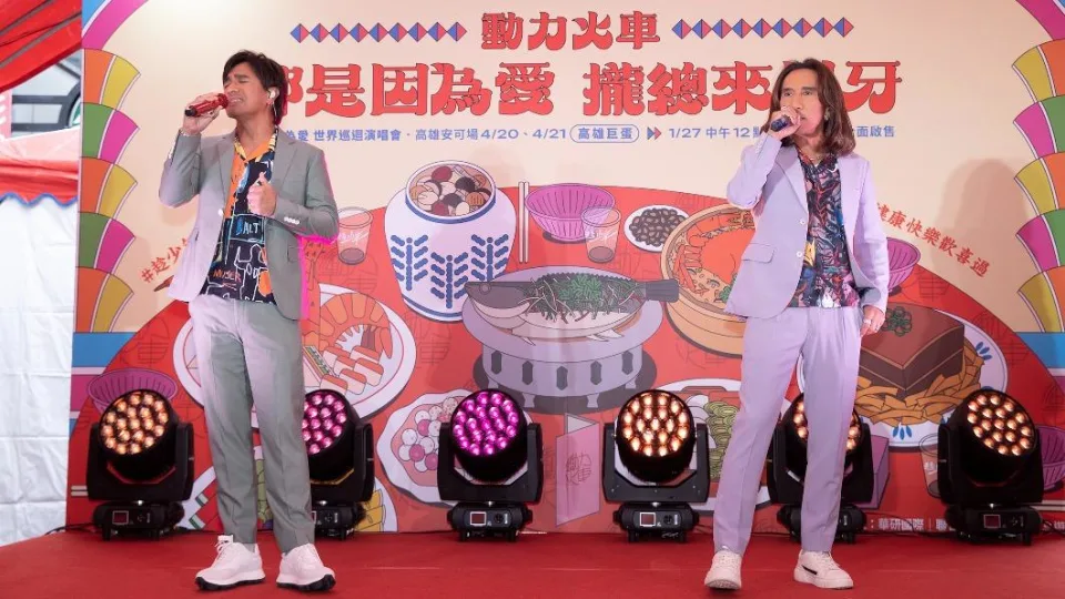 【記者爆料網 王傳文/綜合報導】搖滾天團「動力火車」24日他們在台北熱鬧的東區街頭,舉辦「都是因為愛 攏總來尾牙」記者會,為4月20、21日在高雄巨蛋舉辦的「都是因為愛」返場造勢。不過正值尾牙旺季,他們近來忙得不可開交,顏志琳爆料至少唱了50場,荷包滿滿。