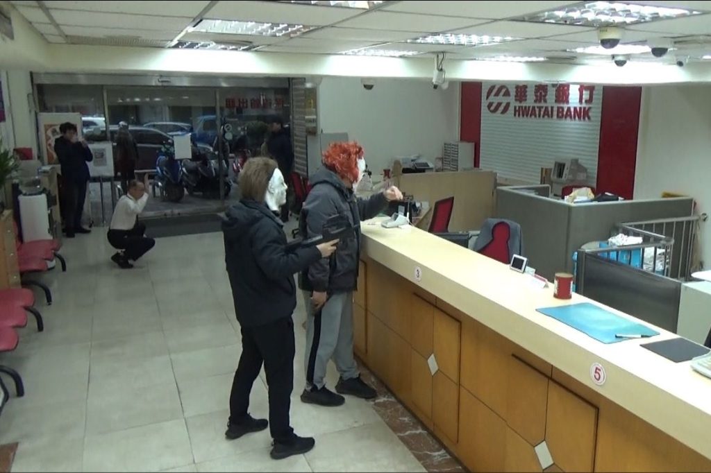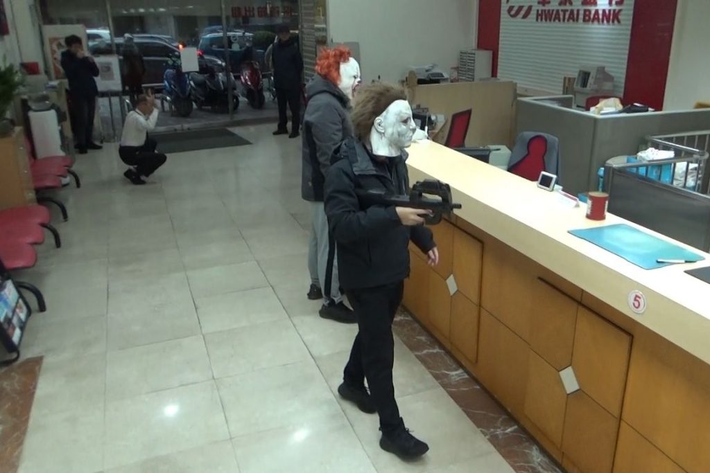 此次演練歹徒由2名員警扮演電影《牠》裡的小丑與著名面具殺人魔麥克,兩人聯手搶銀行,要求行員將鈔票放入袋中,行員為避免受傷配合指示裝入現鈔,歹徒得逞後立即共乘停留銀行外銀色休旅車逃逸。行員伺機按下警鈴。萬華分局獲報後立即通報線上警網趕赴現場,立即依SOP實施現場封鎖、通報鑑識小隊到場採證勘驗,並詢問行員歹徒特徵、交通工具、車牌號碼、顏色及逃逸路線等資訊,立即通報啟動分局線上警力攔截圍捕,另通報周邊大同分局、新北市政府警察局三重分局共同實施攔截圍捕,順利逮捕犯嫌。