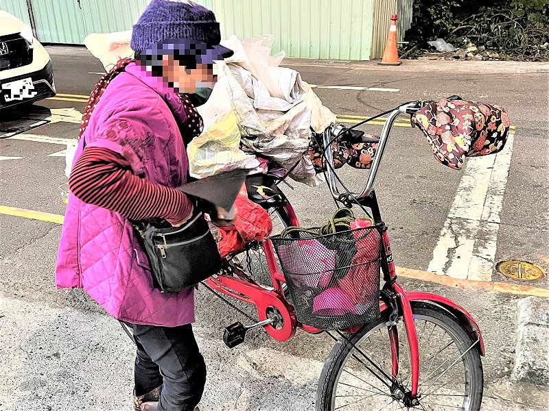 黃、朱2員警由1員駕駛巡邏警車打著雙閃黃燈,另1員協助陪同老婦人牽行載著回收袋的腳踏車前行,當快抵達紙條上書寫地址之際,老婦人看著眼前熟悉的住家房子,嘴上也隨即喊說出「對啦到家了、就是這裡」;2員警事後向家屬了解得知,平時78歲李姓老婦人都會騎行腳踏車到重劃區工地拾集回收袋,惟家人總是勸說不要外出拾集回收袋以免發生危險,還好在家人們慌忙到處找尋返家探望時就見警方援助自己母親返家,讓家屬們那心中慌忙找尋,擔憂如大石般不安的心才轉換平靜安心,員警也不忘叮囑提醒家屬,還是要多注意關心李老太太生活作息,以免萬一要是真的走失或發生難以臆測的意外