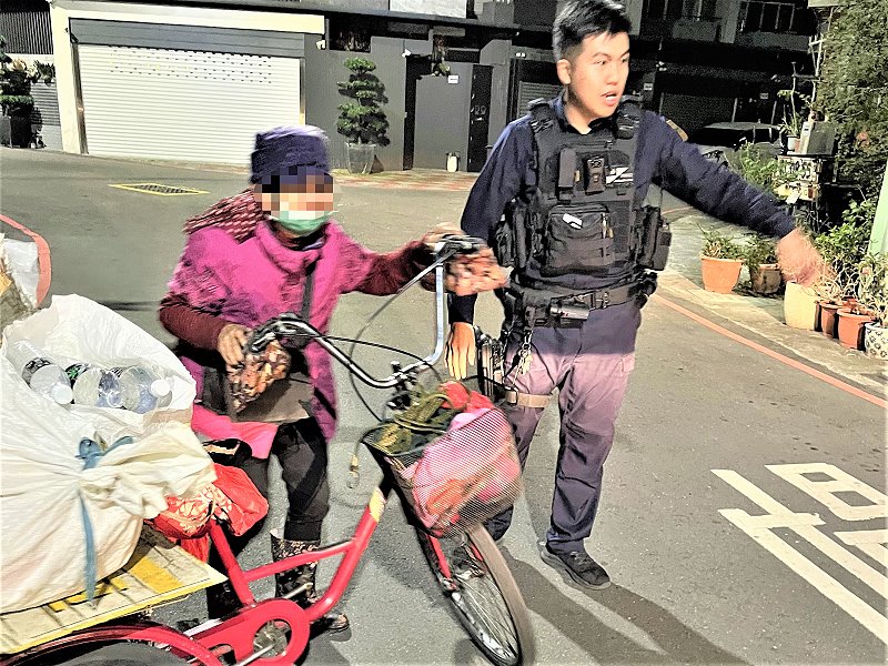 〔焦點時報/記者呂明鴻報導〕嘉義市政府警察局第一分局八掌派出所警員黃柏儕、朱育君於日前巡邏時接獲湖子內重劃區超商門市店員報稱,有位老奶奶迷途需要協助,2員警獲知後向牽行腳踏車載滿著回收袋的老婦人關心提問,然而老婦人卻連自己名字都沒能清楚說出,只見騎伸手從身背著一只小單肩包內翻找,卻沒能拿出足以辨識身分物件。