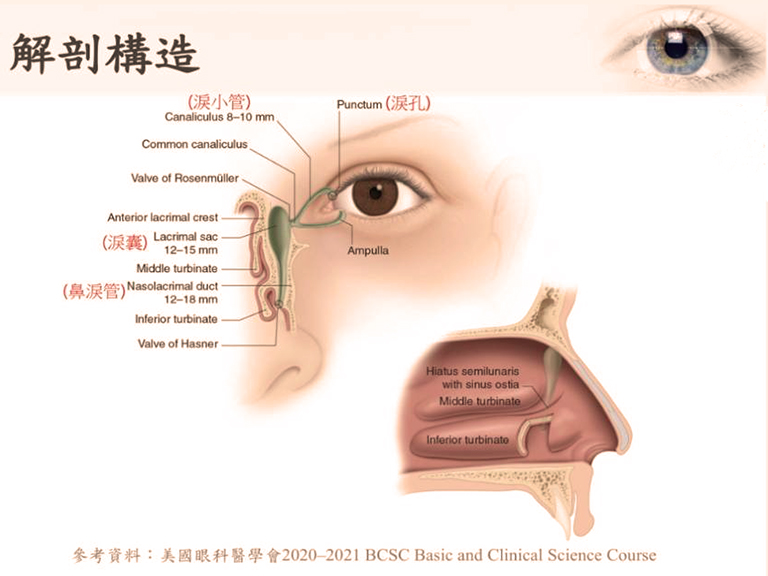成大醫院眼科部醫師林柏安表示,淚液大部分是由淚腺分泌的,功能是滋潤眼表及清潔,再經由鼻淚管系統引流至鼻道排出。當負責「排水」的鼻淚管系統阻塞或功能不佳,淚液無法順利排出時,會造成溢淚或分泌物增加。如果淚水長期滯留淚囊引起細菌孳生,可能導致急性或慢性淚囊炎併發蜂窩性組織炎,需要謹慎看待。