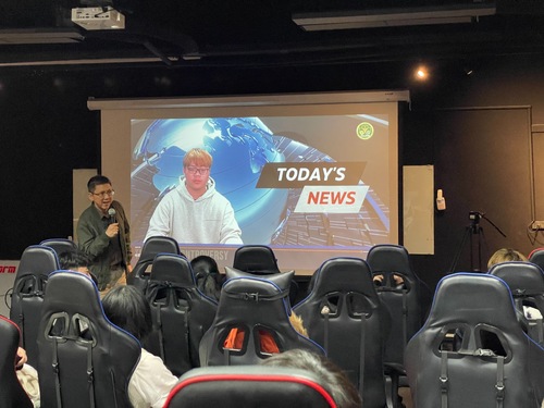 第二天的實戰演練中,則移師到樹德科大,使用電競與電腦娛樂系專業的超立方電競科技館、影音轉播及影音後製工程館,學生們正式上場在虛擬主播台模擬播報英文時事新聞,訓練「英語口語能力」、「說故事能力」、「新聞洞察力」、「臨場反應能力」、「人際溝通能力」與「創新突破能力」,最後學生以自己的播報影片來驗收《2024主播冬令營》學習成果。