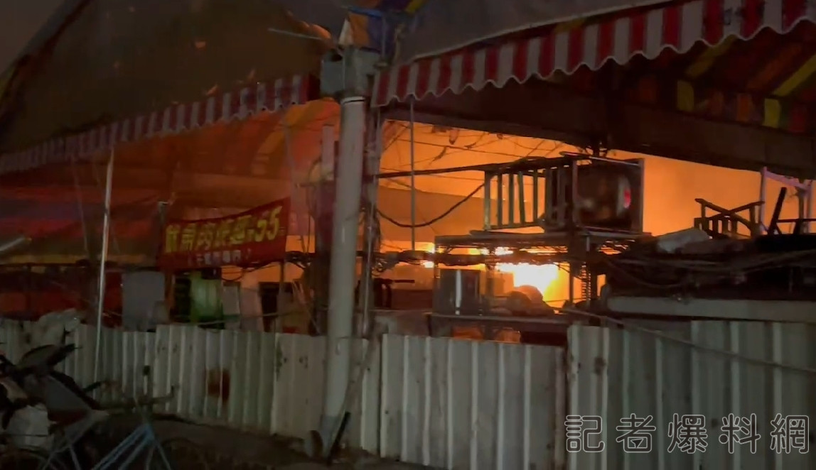 (畫面翻攝)這起火警發生在6日晚間21點半左右,地點是台中市東區復興路五段、自由一街的知名干城跳蚤市場,當時消防隊出動六個單位、47名消防員前往搶救,緊急佈水線灌救,因干城跳蚤市場販售二手商品為主,攤位集中區堆放大量雜物,火勢一發不可收拾,濃煙沖天、火舌竄燒,不少民眾及攤商聽到消息,到場焦急圍觀。