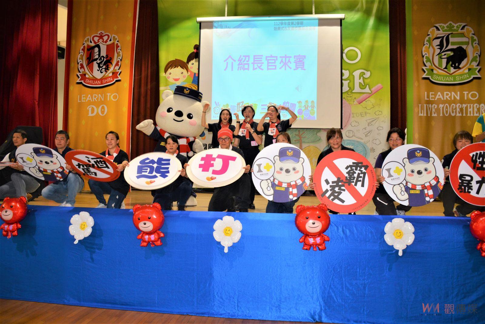 (觀傳媒嘉義新聞)【記者郭政隆/嘉義市報導】嘉義市112學年度第二學期友善校園週宣導活動,2/21日上午在宣信國小隆重登場,嘉義市政府教育處郭添財處長代表黃敏惠市長出席活動,與現場貴賓一同邀請神秘嘉賓-警察大白熊登場,並進行友善校園宣導,本次活動主題為:「校園詐騙防制-你快樂我平安」,展現嘉義市對防詐的重視,以期能建構和諧、安全、健康的友善校園學習環境。