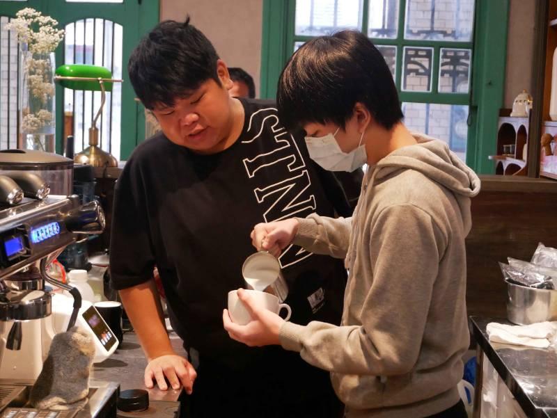 圖說:HOPE計畫與逆風樓咖啡館合作職業試探課程,圖中為咖啡拉花實作。