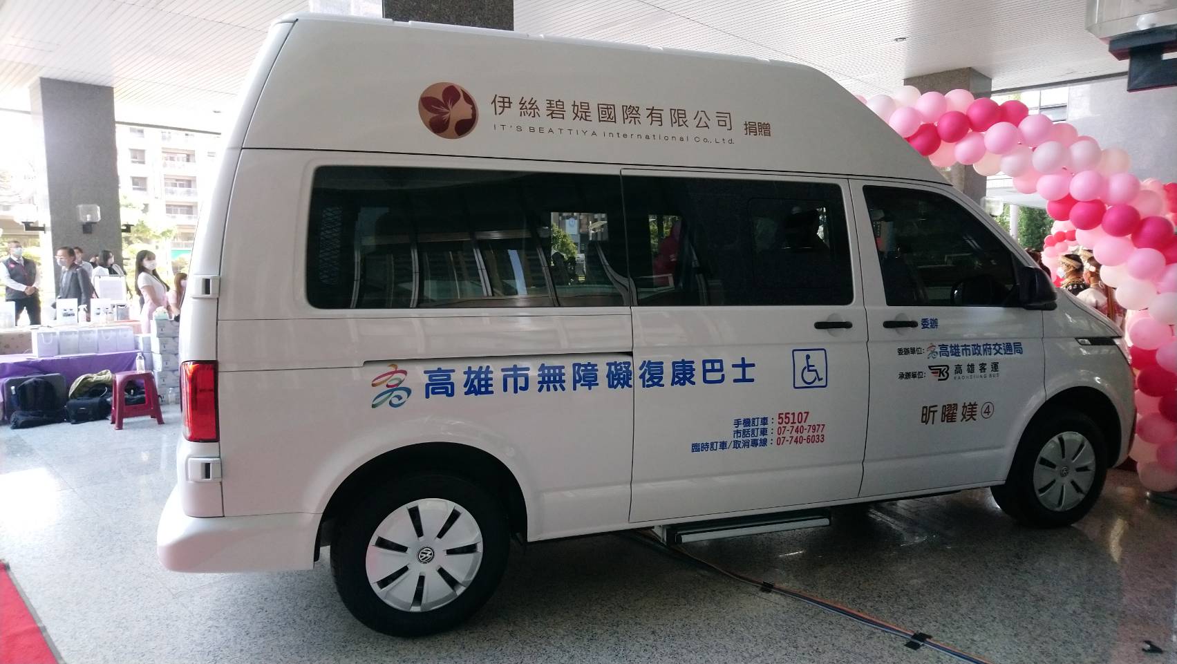 伊絲碧媞國際有限公司劉依淳董事長說,有感於身心障礙者有復康巴士往返醫療院所的交通需求,首家跨縣市分公司於高雄成立,帶著感謝與回饋的心,捐贈高雄市2輛高頂復康巴士,是伊絲碧媞公益起跑後的第一棒接力,未來也期許善的循環繼續全台接力。