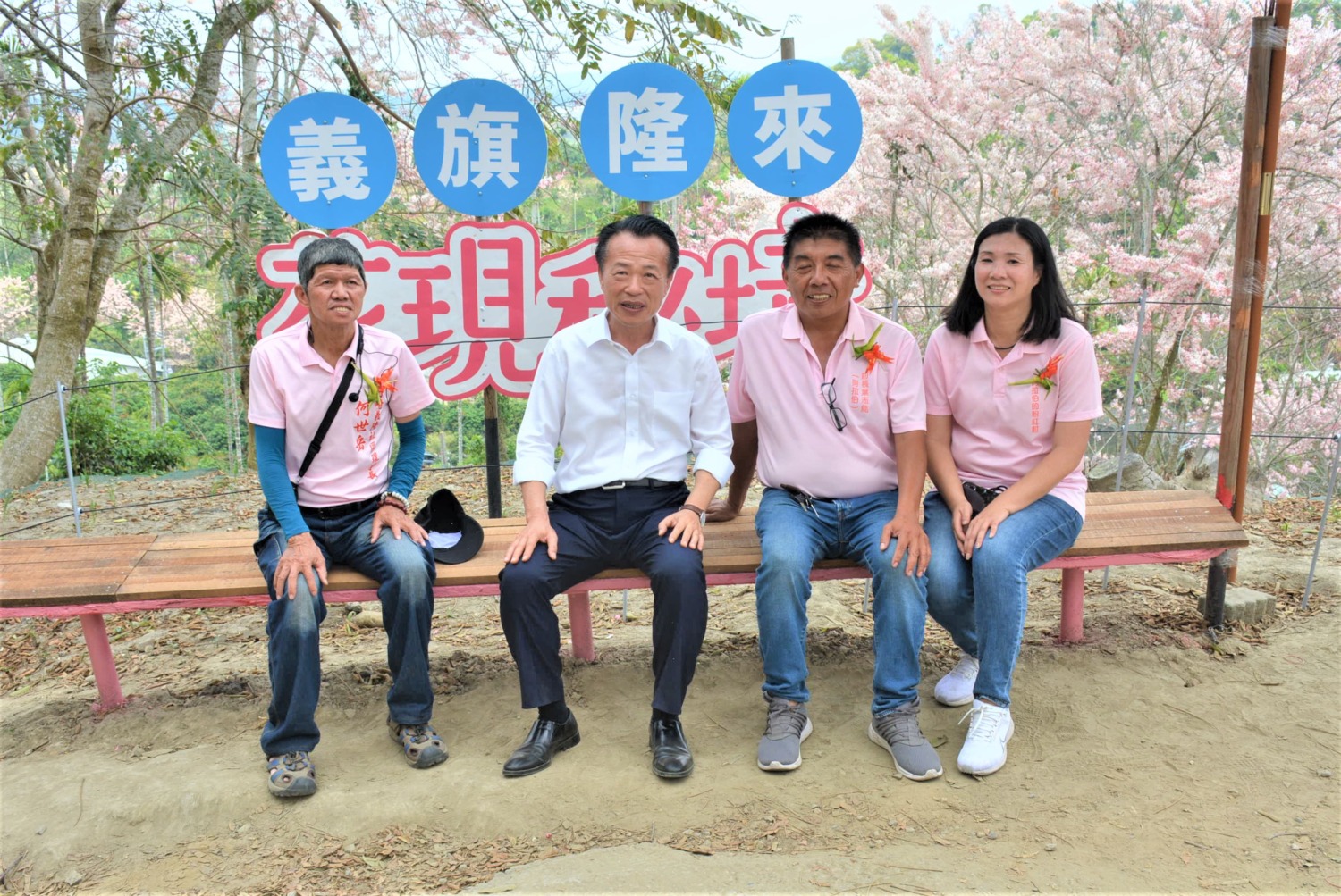 4/6日親臨造訪的嘉義縣長翁章梁指出,進到粉紅村之前,就先在路旁兩側看見滿開的粉紅花旗木,景色美麗動人;只要心中懷抱想法與夢想並積極實踐,就能創造一個讓民眾遊憩的漂亮場所,進而讓觀光商機蓬勃發展,現在每年都有許多遊客前來賞花,也讓葉村長夢想成真。