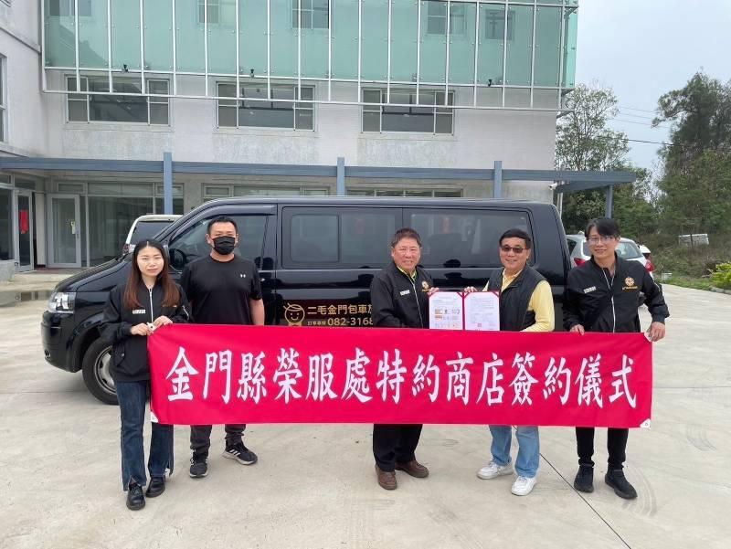 【大成報記者于郁金/金門報導】為落實輔導會服務照顧工作,提供退除役官兵消費優惠,7日金門縣榮服處游文勇處長與二毛旅行社公司張國威董事長簽署退除役官兵特約商店優惠合約書,凡憑榮譽國民證、榮民遺眷家戶代表證、退除役官兵輔導委員會及所屬機構員工證、榮欣志工服務證、備除役軍人眷屬證、第二類退除役官兵權益卡、美國退伍軍人事務部製發之退伍軍人卡、美國退伍軍人健保卡、後備軍人輔導中心服務證,陸軍第一特種兵榮譽證及數位榮福卡等,均有優惠,並同時提供合作企業,浯島文旅、永成租車、醉酒香陳窖等公司優惠方案。