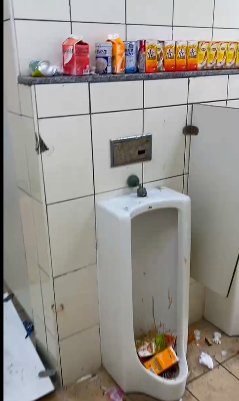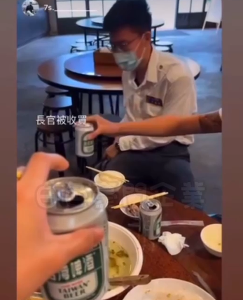 畫面中有長官帶替代役男外出喝酒的鏡頭。翻攝畫面網路上最近流傳多部跟消防替代役男有關的影片,地點幾乎都在內政消防署竹山消防訓練中心,包括兩名役男一言不和吵架摔椅,還有役男穿著制服跳科目三,一名役男疑似在寢室內抽起紙菸,影片第48秒還有專訓期間長官帶專訓役男外出吃飯喝酒的畫面,另外還有一部影片據稱是253T專訓役男培訓期間宿舍廁所使用的情況影片,只見廁所內馬桶、小便池被丟滿菸蒂、鋁箔包,髒亂不堪,十分噁心!