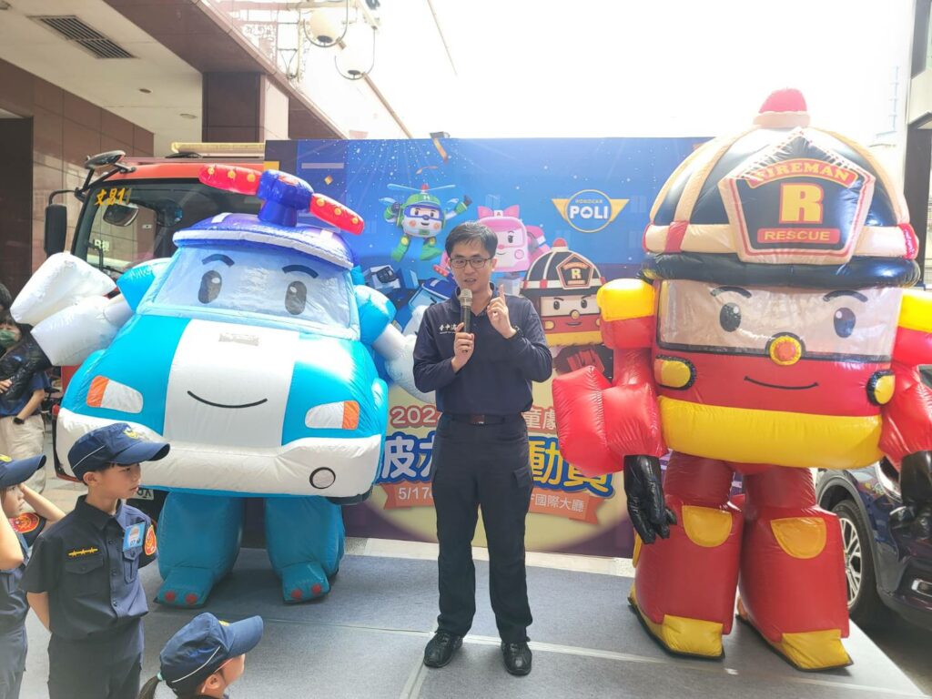 今(14)日中友百貨特別邀請小朋友們扮演小小波麗士與小小消防英雄一同參與活動發佈會現場,小朋友最喜愛的波力及羅伊也驚喜現身活動現場與小朋友們同歡!同時特別邀請波麗士大人與消防英雄、波力、羅伊一同舉辦小小英雄體驗營,藉著體驗遊戲帶領小朋友們闖關,吸取交通及消防知識。」穿上帥氣制服的小小英雄們可愛又吸睛,每個人都興高采烈的參與各項闖關遊戲,希望藉由遊戲體驗讓小朋友們將交通及消防知識留下深刻記憶。