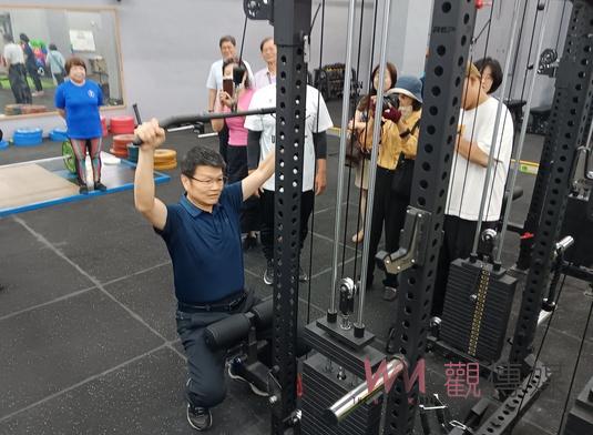 校長林翰謙也親自體驗重量訓練器材,實際感受新型器材的功能。李彩薇老師積極鼓勵熟齡族找到適合自己的運動模式,持之以恆,由於熟齡族普遍肌力不足,可考慮進行重訓,但旁邊一定要有專業教練指導正確的施力。