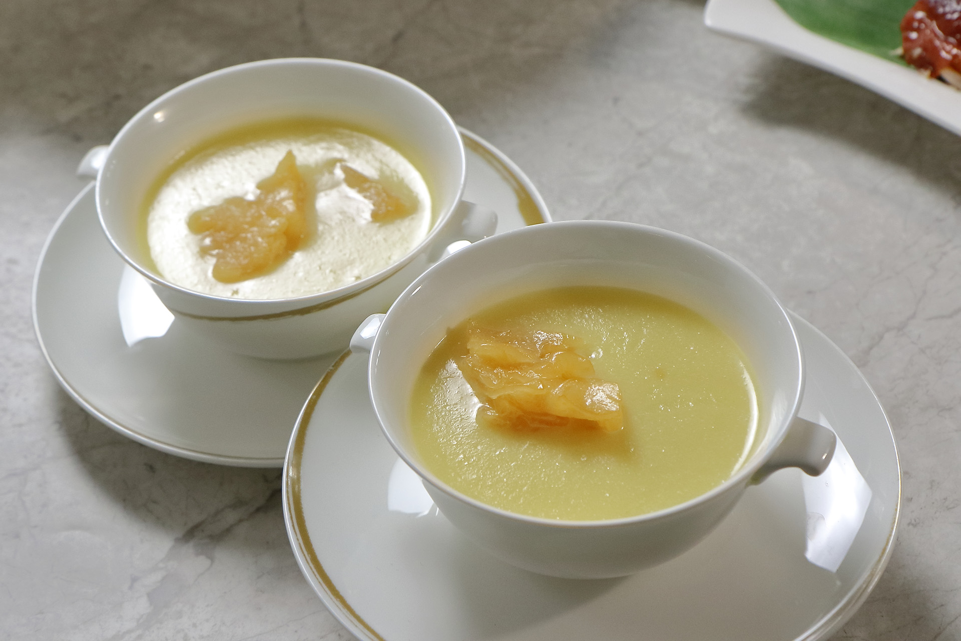 凡於4月1日至4月30日享用極饗御品四人分享餐,還加贈味道和誠意都滿滿 的「花膠濃湯煨雞粥」2客▲(圖/創新聞記者陳光蘊翻攝)此外,凡於4月份活動期間享用「極饗御品」分享餐,再加贈價值3,360元的主廚精選料理「花膠濃湯煨雞粥」2客,主廚選用吃玉米長大的黃皮雞,肉質較為甜美,先將其切塊,以傳統料理工法烹調,將白米、乾干貝透過小火煨煮近十多個小時,將白米熬出粥糜後,再過濾掉所有湯料,僅保留最精華的雞粥湯;濃郁湯頭搭配營養價值極高的花膠,溫潤中展現出食材的細緻感,是一道養生又健脾胃的暖心粥品,把握機會手刀訂位。