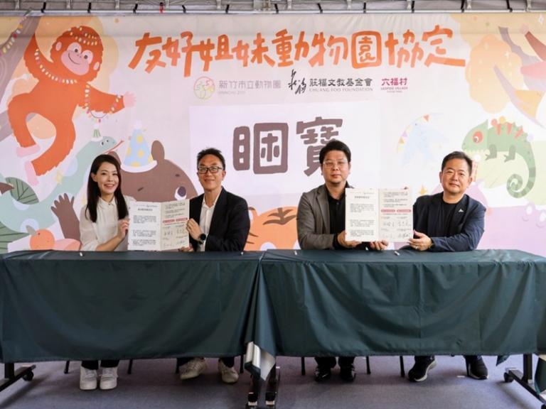 新竹市立動物園與財團法人莊福文化教育基金會附設動物園(六福村)今(20)日在市長高虹安與六福旅遊集團總裁暨財團法人莊福文化教育基金會附設動物園董事長賴振融見證下,正式簽約締結為姊妹園。盼透過締結姊妹園,以動物保育為共同目標,提升醫療與照養經驗、專業人才培訓等面向之交流與合作。