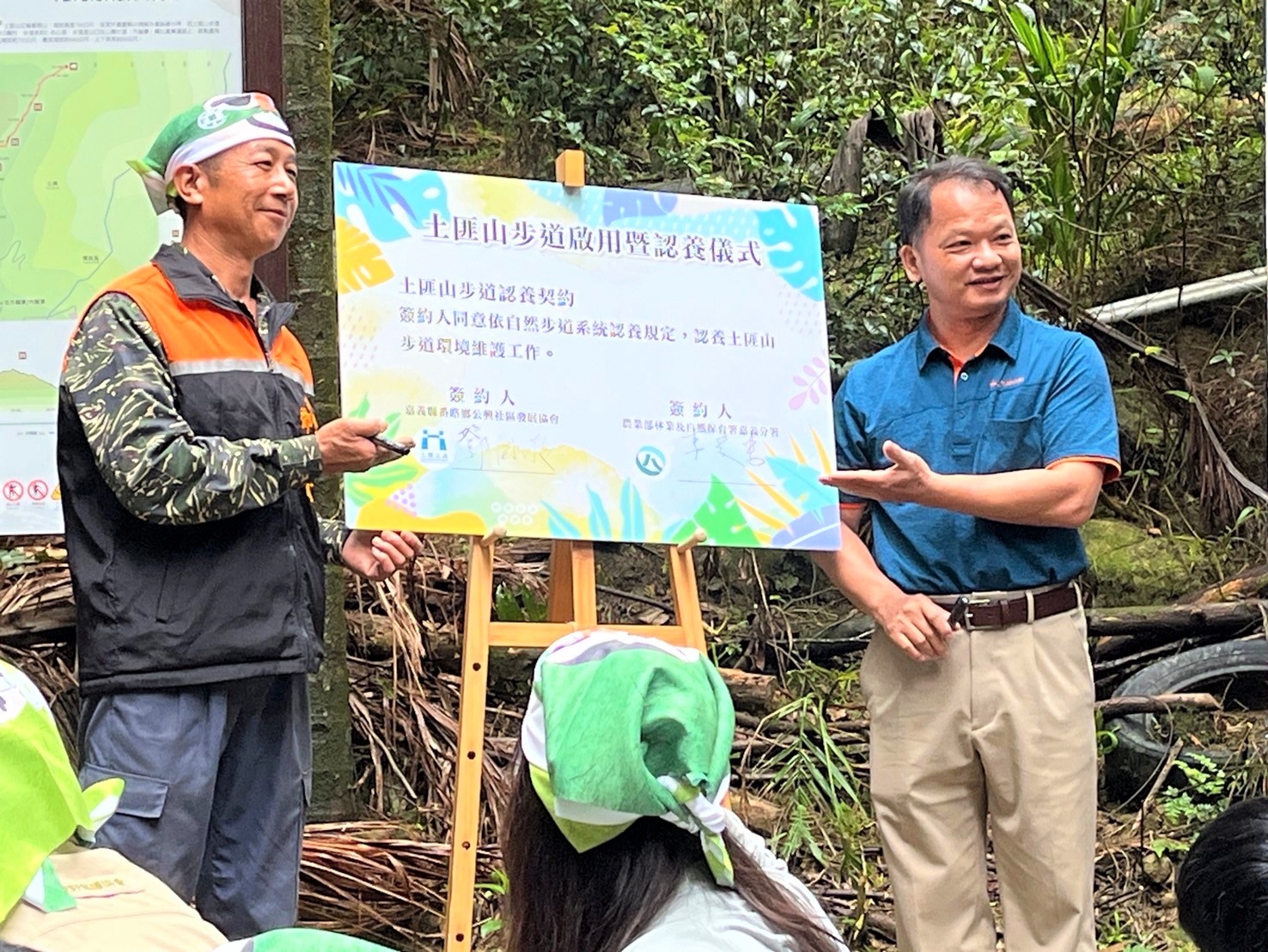嘉義分署4/28日在土匪山步道登山口舉辦步道啟用暨認養儀式,邀請來自在地社區及社團法人中華民國荒野保護協會等70位嘉賓齊聚一堂,共同見證土匪山步道重新開放的重要時刻,另外也同時由嘉義縣番路鄉公興社區發展協會簽署認養步道協議,展現公私協力認養維護步道的成果;儀式結束後,參與者們也一同健行體驗步道設施及淨山活動,實際感受土匪山步道豐富的自然人文環境。