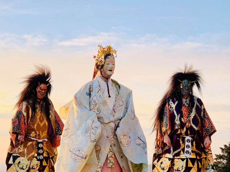 日本傳統藝能「能劇」擁有600餘年歷史,松風幻影、獨有的幽玄之美、精緻的能面與服裝、搭配地謠與樂器,微舉手投足間都展現著能劇的魅力風采。飾演媽祖的片山九郎右衛門受高雄春天藝術節邀請,已於去年與主要演員來到高雄文化中心至善廳舉辦「前導講座」並進行正式演出場地勘選,也為台灣觀眾帶來精彩滿點的「能」量;今年片山九郎右衛門率全員國寶級能樂師齊聚高雄以於日本傳統藝術且被認定為無形文化遺產的「能」型式演出,透過台日文化交流的浪漫能量,祈禱跨越海洋的和平,將愛傳遞到世界各角落。
