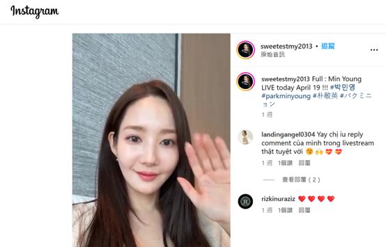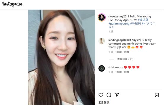 圖/曾出演爆火韓劇金秘書為何那樣的朴敏英,在IG直播說要來台灣,令粉絲又驚又喜,紛紛熱情留言。(翻攝自朴敏英IG)